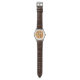 Delicious looking chocolate chip cookie on quirky brown leather watch.