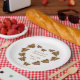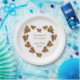Wedding paper plates butterfly heart design. Customise this chocolate coloured plate with your wedding details. Should you require any help with customising then contact us through the link on this page. Chocolate coloured butterfly heart design personalised wedding paper plate