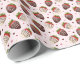 This adorable gift wrap is light pink and features a pattern of chocolate covered strawberries.