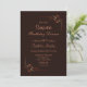 Elegant rich chocolate and cream customisable surprise 60th birthday dinner invitations featuring warm rose gold floral leaf embellished corners to frame the invitation details.