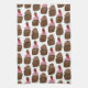Chocolate Cupcakes Watercolor Pattern Tea Towel