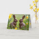 Two delightful chocolate bunny sculptures nestled in a lush grassy field, enveloped by cheerful yellow daffodils