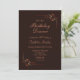 Elegant rich chocolate customisable 40th birthday dinner invitations featuring warm rose gold floral leaf embellished corners to frame the invitation details.