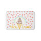 Chocolate Ice Cream Polka Dots Dream bath mat. Customisable bath mat has a cute chocolate ice cream cone surrounded by pink polka dots and the words ice cream on the bottom.