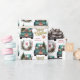 A teal blue pickup truck carries a decorated Holiday tree and gift packages on this cute gift wrapping paper. A chocolate Labrador Retriever Dog wears a Santa Claus hat and looks out from the tailgate. A rustic wooden sign on the back bumper says "Christmas Cheer". Your monogram is enclosed within a pretty pine cone and red berry wreath, and stylised gold text says "Merry Christmas". You may also customise the "from the (Name) section.