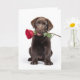 Celebrate Valentine’s Day with this irresistibly sweet Chocolate Labrador Retriever card featuring an adorable Lab puppy holding a single red rose. With their warm expressions, gentle nature, and loyal hearts, Chocolate Labs perfectly embody love, devotion, and companionship.