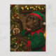 Humorous Christmas holiday card featuring a chocolate / brown Labrador cheekily hanging a Christmas bauble with an image of itself on the Christmas tree.