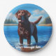 Is there a breed of dog that loves water more than a lab? This design shows a chocolate labrador in blue water.