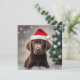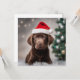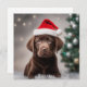 Cute Chocolate Labrador puppy wearing a Santa hat.
