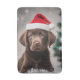Cute Chocolate Labrador puppy wearing a Santa hat.