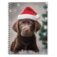 Cute Chocolate Labrador puppy wearing a Santa hat.