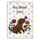 Chocolate Labrador & Green Feel Better soon Card. Cute Chocolate Labrador expression Card created by Naomi Ochiai from Japan. Adorable Chocolate Labrador Puppy is smiling with flowers in the garden. Cute Chocolate Lab puppy cartoon, illustration design for get well card design. You can customise text and more!