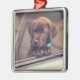 Chocolate Labrador Puppy In Car Metal Tree Decoration