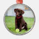 Chocolate Labrador Puppy With Tennis Ball Metal Tree Decoration