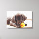 Chocolate Labrador Puppy With Toy Duck Canvas Print