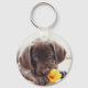 Chocolate Labrador Puppy With Toy Duck Key Ring