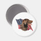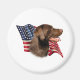 USA! America! Shout your pride with this patriotic flag background featuring the AKC Chocolate Labrador Retriever in the forefront. Show your American pride with this patriotic chocolate lab design.
