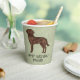 Destei's original cartoon illustration of a chocolate brown colour Labrador Retriever breed dog. The background colour is green with a decorative texture. The texture can be removed and the background colour can be changed to any other colour, if so wished. There is also a personalizable text area ideal for writing the theme of your event whether it's a birthday party or a pet gotcha adoption day celebration.