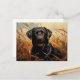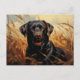 A chocolate Labrador Retriever stands amidst tall, golden-brown grass, its dark fur contrasting sharply with the warm hues of the background. The dog's head is tilted slightly, its eyes gazing directly at the viewer with a gentle, almost inquisitive expression. The soft, blurred background suggests a peaceful, natural setting, perhaps a field or meadow. Ideal gift for labrador lovers.