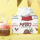 The repeated pattern on this cute Christmas wrapping paper is an image of an adorable Chocolate Labrador Retriever puppy peeking out from a red and white Holiday gift bag. Behind him is a sprig of holly and red berries. A red and black bullfinch bird is about to land. Stylised red and black buffalo plaid text says MERRY CHRISTMAS", and "Happy New Year" is in dark green. Your own signature is in two fields for you to customise. Be sure to see the matching gift tags.