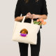 A sweet chocolate ladybug cupcake with rainbow sprinkles on a tote bag.