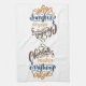 "Chocolate makes everything better" declares the stylised text on each end of this fun kitchen towel. Text colours include dark chocolate brown, gold, and navy blue.