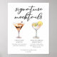 This dessert signature mocktails menu poster features 2 sweet non-alcoholic drinks and their ingredients for your party or wedding bar. A Chocolate Martini and Lemon Drop drawing above your custom event text.
