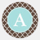 A dark, chocolate brown pattern and an aqua accent gives these monogram stickers retro style. Personalise the text to suit your needs. Use these stickers in the kitchen, for baking, school, business, office, crafts, gifts, gift bags, a wedding, baby shower, etc...The design is from original art.