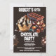 A striking 3D ai watercolor graphic featuring realistic looking ice cream scoops in a waffle cone drenched with soft chocolate sauce placed next to a stack of chocolate slabs and squares set against a dark brown background that makes the illustrations pop. Personalise white text templates to suit your personal requirements. This elegant watercolor design is ideal for kids, adults and teens hosting a chocolate or sweet themed birthday party.