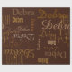 A nice typography pattern. Repeated name in different font styles and sizes on a brown background. A tone of dark brown that resembles chocolate.