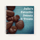 Chocolate seashells spiral bound notebook for recipes.  Fill this little blank recipe book with favourite desserts.  Personalise the front with name and title.  The sample pages inside are for recipes, but the page style is easy to change.    This would be a cute book for a budding cook, young or old, or fill with personal favourite recipes to pass down to family.