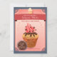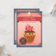 A versatile invitation that can be used for a baby sprinkle, bridal shower or as a birthday party invitation. The yummy-looking cupcake has chocolate drizzle and sprinkles and a pink dollop of whipped cream. The background is a pink radiant over grey with a berry banner and decorative corners. (FP)