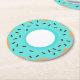 Chocolate Sprinkles Blue Doughnut Round Paper Coaster
