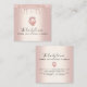 Present your best self to your clients, with these elegant, sophisticated, simple, and modern custom name square business cards. A sparkly, rose gold strawberry, script handwritten typography and glitter drips overlay a faux metallic rose gold ombre background. Personalise with your full name and business on the front. Fill in the back side with your phone numbers, address, email, website, and social media accounts. Makes a chic, professional, and stylish statement wherever you go.