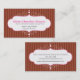 Chocolate baking or chocolatiers business cards. Chocolate brown stripes with touches of pink and white swirls, personalise with your own candy, chocolate or baking business name and contact information. Original design by www.mylittleeden.com