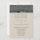 Elegant invitation in chocolate brown and turquoise with ornate top damask border and faux brown satin ribbon and bow. Background has subtle linen look. Please note that bow is a graphic and prints flat with the invitation. Can be customised for any event when a formal and elegant invitation is needed. Choice of paper finishes and colours. Invitations come complete with envelopes. Matching pieces available in store.