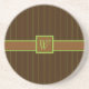 Add a little swank to your style with this simple yet classic pinstripe pattern with a chocolate brown base and a bright lime green accent stripe. Customise the monogram on this coaster with your initial to make it uniquely your own.