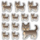 Destei's original cartoon illustration of a cute chocolate brown colour Yorkshire Terrier / Yorkie breed dog. The design is placed 12 times on the sheet in three different sizes. There is one bigger dog, three medium size dogs and eight small size dogs.