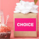 Choice hot pink fuchsia and white women’s pro choice abortion rights stickers.