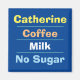 Office worker Choice of Drink, Milk & Sugar Preference magnet. Magnet that shows the staff member's Name plus their choice of Coffee or Tea, Milk, & Sugar Preference