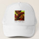 Hat with a modern stylised pattern featuring Choisya Sundance leaves in orange, brown, red, yellow and green. A customisable design for you to personalise with your own text, images and ideas. The text can easily be changed using the template provided or click the 'Customise It' button to make further alterations. Created using an original photograph and digital techniques by Jess Perry.