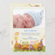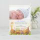 Whimsical and adorable choo choo train and baby animals designed on custom Baby Boy Photo Birth Announcements. All the text is fully customisable, and it's very easy to change the wordings, typefaces, colours, and sizes of the text.