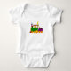 This bodysuit for baby features a graphically designed choo-choo train with a giraffe. A darling bodysuit for a boy baby.