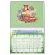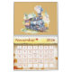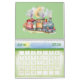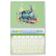 The cutest set of 13 little watercolor choo choo train engines will delight any small child with this calendar hanging in their room.