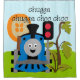 Kids who love trains will love this shower curtain featuring a blue train with eyes and a smile on a railroad track with black text that reads Chugga Chugga Choo Choo!