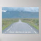 Inspirational wall art featuring the text "Choose a direction all your own" set against a single lane highway leading to cloud covered mountains.