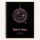 This elegant notebook features a trendy, retro hand-drawn disco ball with modern script. You can choose any colour for the disco ball, the text, and the background by going into the design tool. The design as shown here is bright pink on a dark black background.