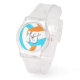 Choose your own colours! This team colours volleyball watch features the image of a bright blue, orange and white volleyball - personalise with the athlete's jersey number -- to change the colours of the volleyball's blue & orange panels, click the "Edit this design" button (above) to access the Zazzle design tool, then select the volleyball image layer and replace the current colours with your team's colours (you can select colours from Zazzle's colour palette or input a colour's HEX code) - similarly, you can change the colour of the jersey number - by katz_d_zynes