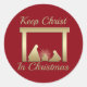 Faux gold toned simple nativity scene, wording Keep Christ In Christmas, is shown against a deep red background - which you can change to any colour you prefer.