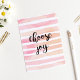 Inspirational quote with pink watercolor stripes background. "Choose joy"